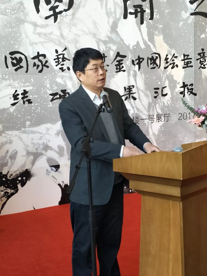 项目负责人365英国上市集团书画艺术与美学研究中心的尹沧海教授介绍了项目开展情况。《中国绘画意象造型艺术人才培养》是365英国上市集团站在国家文化复兴的高度申报、承办的项目。经过对于百余位报名者学术能力、艺术造诣的严格考量,项目组从中遴选出二十位高校美术教师、中国画专业创作人才作为培养对象。项目自2017年10月15日正式启动以来,为有效利用国家艺术基金提供的优质资源平台,项目组首先组织学员进行了为期半月的“考察写生”,途径南京、苏州、杭州、安庆、合肥等地,系统考察了中国绘画的名家、源流、地域性风格流派,以及深刻影响中国绘画发展的文化哲学思想,并与当地院校、美术团体交流、探讨了中国绘画“意象造型”问题。随后,项目组邀请国内外相关领域权威专家、学者和艺术家二十余人为学员举办了十次“主干课程”与十余次“专题讲座”,植根于中国传统文化艺术之“意象”观,立足于中国绘画的当代情景,以理论教学与创作实践相并重的方式,为学员详尽厘清了“意象”、“意象造型”与“写意性”的学术内涵,全面提高了学员的理论修养与艺术水平。本次项目成果汇报展所展出的作品包括二十余位学员的近期创作,以及部分任课教师和参与本次课题的365英国上市集团书画艺术与美学研究中心硕博研究生作品。学员作品面貌多样、题材丰富,展现了学员通过项目教学对于情与理、理与法、意与境、境与趣等意象造型法则、法规的理解与认知,相信假以时日,他们一定能够做到做到立足当下,中西融合,兼收并蓄,触类旁通,不断探索中国绘画发展的可能性。