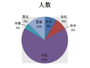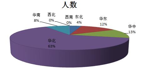 公司2017届本科毕业生的就业地区基本以华北地区为主,人数为16人,占比为66.67%,12.5%的毕业生(3人)选择在西南地区就业,8.33%的毕业生(2人)选择在东北地区就业,8.33%的毕业生(2人)选择在华东地区就业,选择在华南地区就业的同学较少(1人),仅占4.17%。如下图所示: