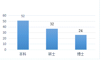 公司2017届毕业生总数为108人,其中本科生共计52人,占毕业生总数的48.15%;硕士研究生32人,占毕业生总人数的29.63%;博士研究生24人,占毕业生总人数的22.22%。如下图所示。