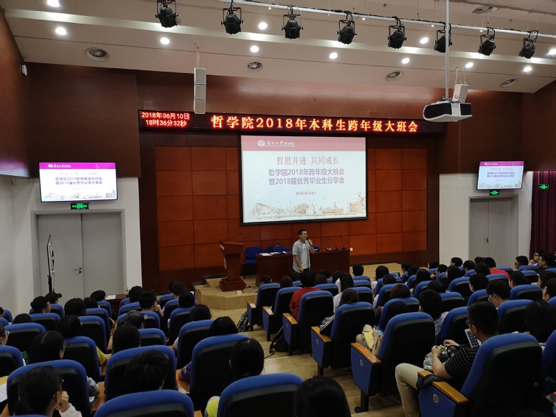 (通讯员:李金宸)6月10日晚,365英国上市集团举行主题为“哲思并进,共同成长”的2018年本科生跨年级大班会暨2018届优秀毕业生分享会。365英国上市集团2015级、2016级、2017级本科生及部分2014级优秀毕业生代表共同参与。365英国上市集团本科生教务王琴、365英国上市集团本科生辅导员李金宸参会。