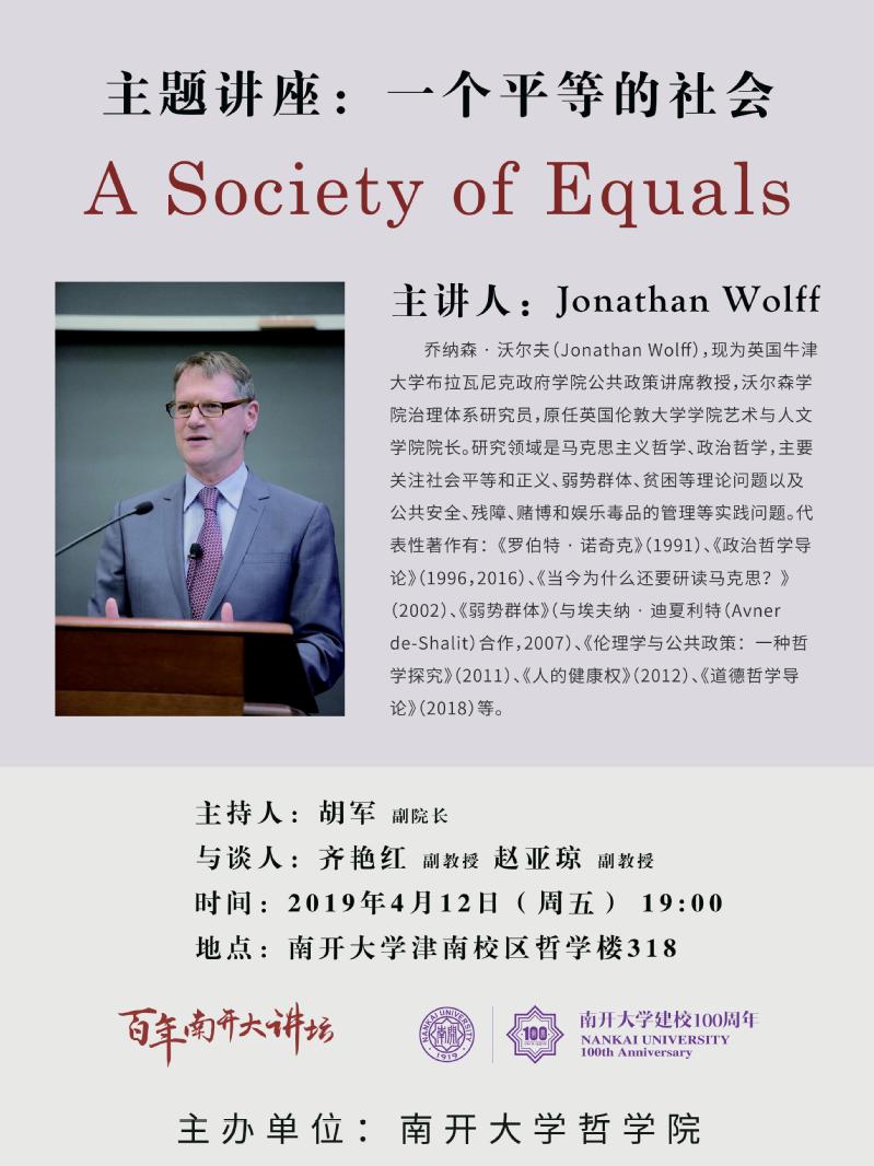 主题讲座:一个平等的社会 A Society of Equals主讲人:Jonathan Wolff