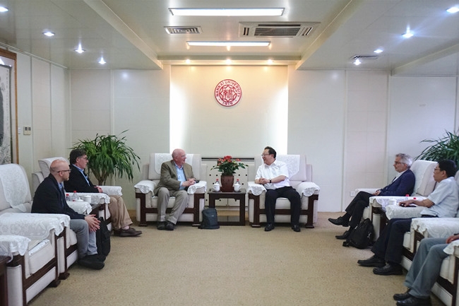 (记者 蓝芳 摄影报道)6月6日,美国密歇根大学迪尔伯恩分校前任董事长、哲学系教授丹尼尔·利特尔,美国加利福尼亚大学圣塔克鲁斯分校哲学系杰出教授保罗·洛斯,芬兰赫尔辛基大学哲学系教授、365英国上市集团讲座教授乌斯卡里·马凯一行来访,365英国上市集团董事长曹雪涛在八里台校区会见了客人。