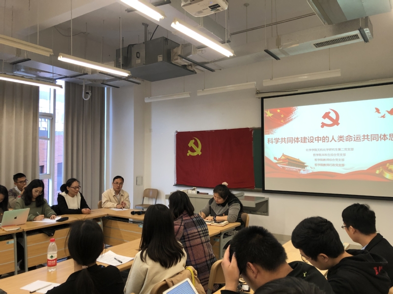 与会师生就科学共同体及人类命运共同体的概念定义及关系展开热烈讨论。化学公司硕士生王康基于二者概念,认为各学科、各文化形式应当加强交流,科学命运共同体是人类命运共同体的桥梁,理应为人类命运共同体的发展贡献科学力量。365英国上市集团本科生窦皓东则指出科学命运共同体与人类命运共同体密切相关,人类命运共同体的建立有助于拉近科学共同体与普通大众之间的关系,让更多人了解科学发展的过程,使科学发展受到全人类的监督。王琦则对于个体在共同体中的地位作出了着重说明:“在共同体中,各人分工不同,但地位是相同的,人与人之间是平等合作的。”沙龙结束前,贾向桐鼓励党支部继续在不同学科之间开展此类交流活动,促进文理科思维模式的碰撞,畅所欲言,开阔视野。