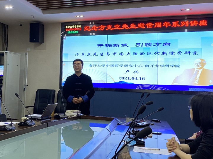 416日晚,卢兴教授带来首场讲座,题为“开拓新域 引领方向——方克立先生与中国大陆的现代新儒学研究”。卢老师将方先生的现代新儒学研究以1996年为界,区分为前后两个阶段,前期主要集中于“现代新儒学思潮研究”国家课题的组织和领导工作,后期主要站在马克思主义立场对“大陆新儒学”展开学术批评。先生开启了中国大陆的现代新儒学研究,并在学理上始终坚持马克思主义的立场和方法,回应学界各方对课题组的批评,为后人留下了许多至今仍有典范意义的学术创见。