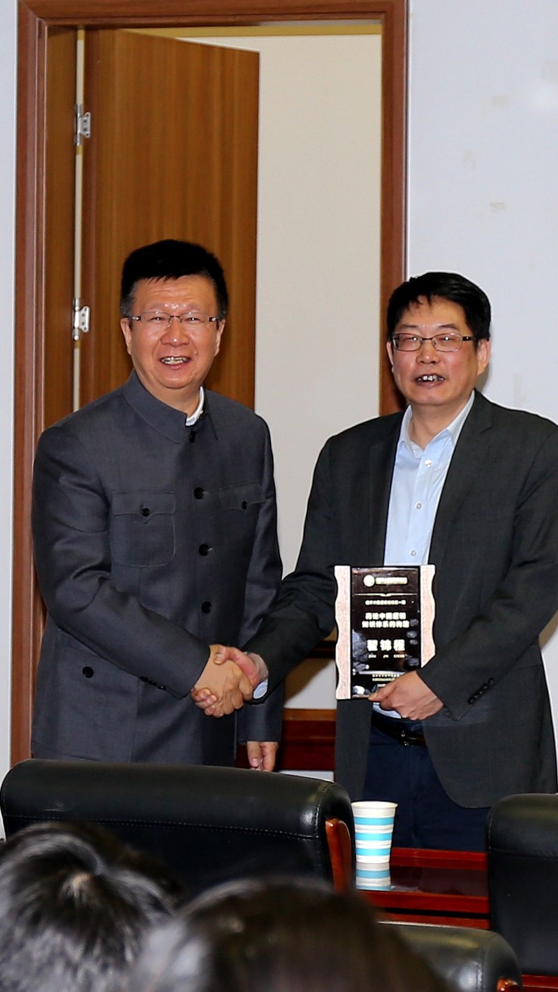 公司党委书记赵爽向王勇教授颁发捐赠纪念牌