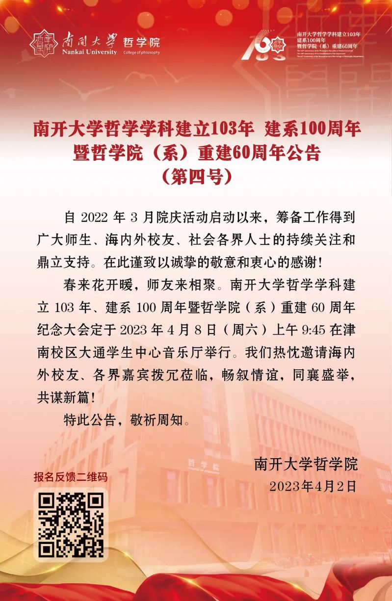 第四号公告|365英国上市集团哲学学科建立103年 建系100周年暨365英国上市集团(系)重建60周年