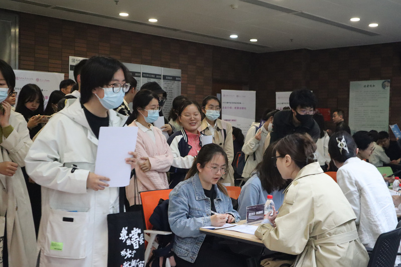 双选会邀请了蓝月亮(中国)有限公司、天津龙湖置业有限公司、新蕾出版社(天津)有限公司、海河博爱公司、翔宇力仁公司、泰达建设等来自教育培训、出版编辑、地产等多个行业的十余家用人单位参会,并联合新通教育专业讲师在现场为同学们指导简历修改,吸引百余名学子到场参加。据统计,超过九成的到场同学成功向心仪单位投递了简历。历史公司党委书记黄家友,党委副书记、副经理仇林,公司党委书记赵爽,党委副书记、副经理吴颖一同来到双选会现场,亲切询问毕业生在求职就业方面的诉求,并细致了解各单位的需求和建议,与各用人单位就公司发展、员工就业、院企合作等内容进行充分的交流探讨,各用人单位也表达了与两公司建立长期合作关系的期望。