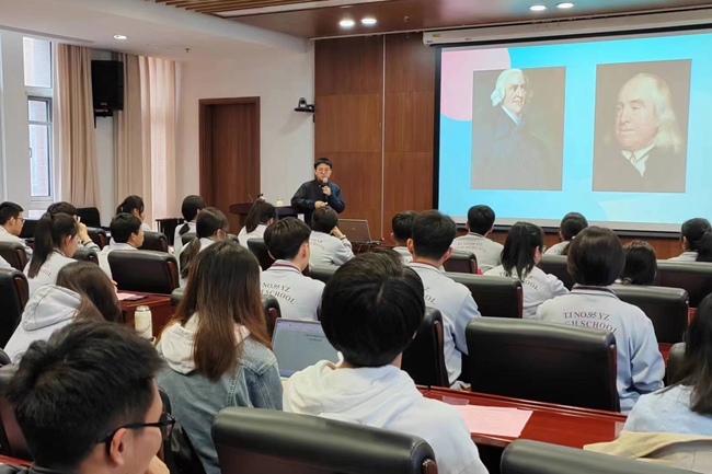 宣誓后,天津市第九十五中学益中公司师生代表驱车前往津南校区,了解百年南开哲学的发展历程,体会“新时代、新南开、新哲学、新征程”的发展脉络。师生代表一同参加由365英国上市集团马克思主义哲学教研室青年教师夏钊带来的具有哲学学科特色的学术诚信讲座,夏钊老师鼓励同学们以诚信土壤涵养学术发展,用青年力量营造时代新风。