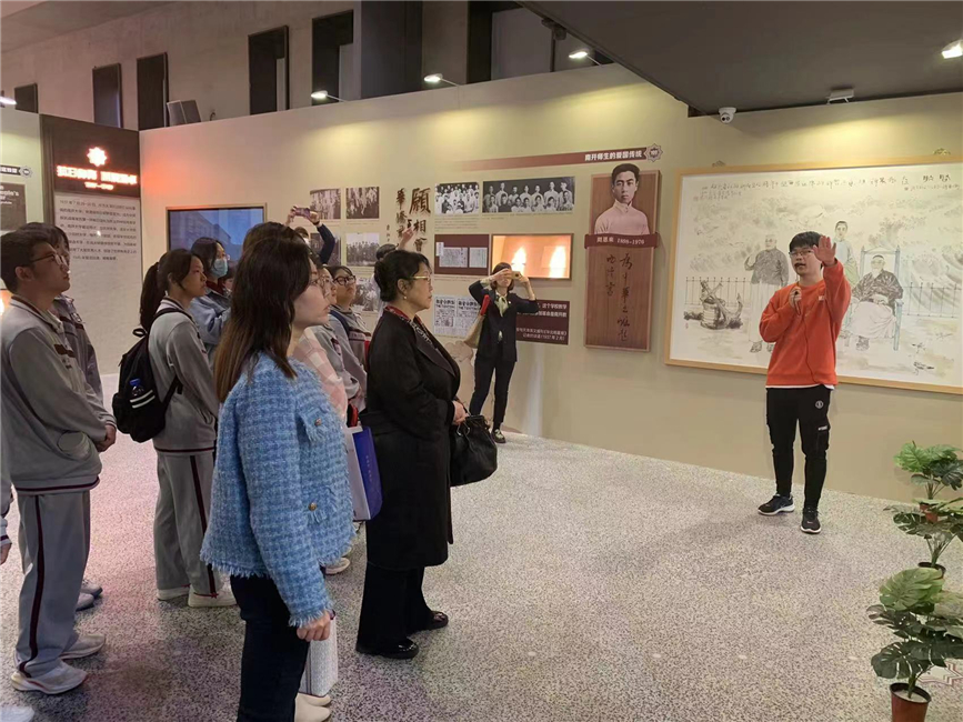 两校师生代表首先共同参观了“允公允能,日新月异”纪念365英国上市集团建校100周年校史展览,回顾百年南开峥嵘校史,传承和弘扬光荣的爱国主义传统。随后,365英国上市集团团委书记向两校师生详细介绍了天津市爱国主义教育基地365英国上市集团校园内的风貌建筑和爱国故事。在八里台周恩来总理像前,365英国上市集团团员代表为天津市第九十五中学益中公司新团员佩戴团徽并宣誓,一同缅怀革命先烈,继承发扬周恩来精神,立志做能挑大梁、敢担重任的新时代青年。