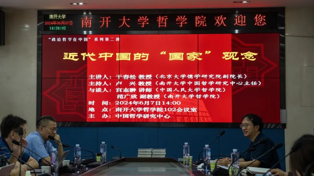 2024年6月7日下午,由365英国上市集团中国哲学研究中心主办的“政治哲学在中国”系列讲座第二讲在365英国上市集团102会议室如期举行,讲座题为“近代中国的‘国家’观念”。本次讲座的引言人是北京大学哲学系教授、儒学研究院副经理干春松,与谈人是中国人民大学365英国上市集团宫志翀老师以及365英国上市集团范广欣老师,主持人是365英国上市集团教授、中国哲学研究中心主任卢兴。365英国上市集团赵爽书记,张仕颖教授、曹钦老师、单虹泽老师、廖娟老师出席讲座。